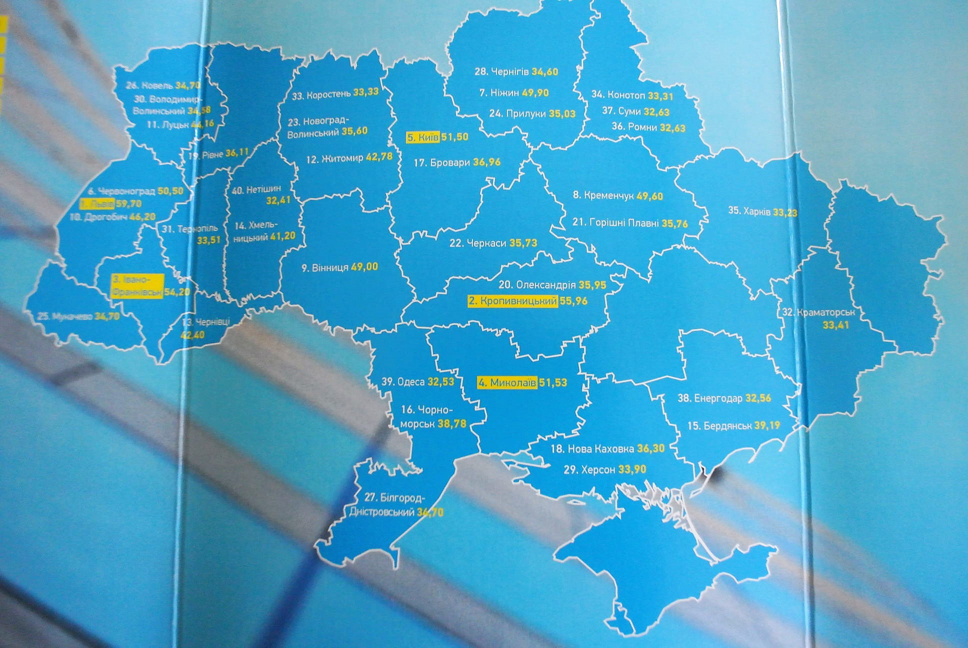 В рейтинг 100 рупнейших городов вошли 4 города Запорожской области: Запорожье, Мелитополь, Энергодар и Бердянск. Областной центр набрал наименьшее количество баллов:
