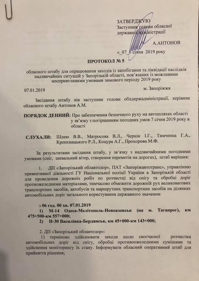 В Запорожской области вновь ограничили движения на трассах государственного значения