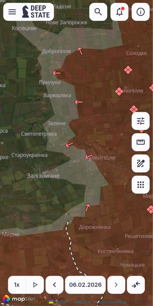 За останні дні ворог зумів дійти до Залізничного на захід від Гуляйполя. Незважаючи, на відключення Старлінк, на Гуляйпільському напрямку росіяни не відмовились від штурмів, хоча їх інтенсивність дійсно трохи знизилась.