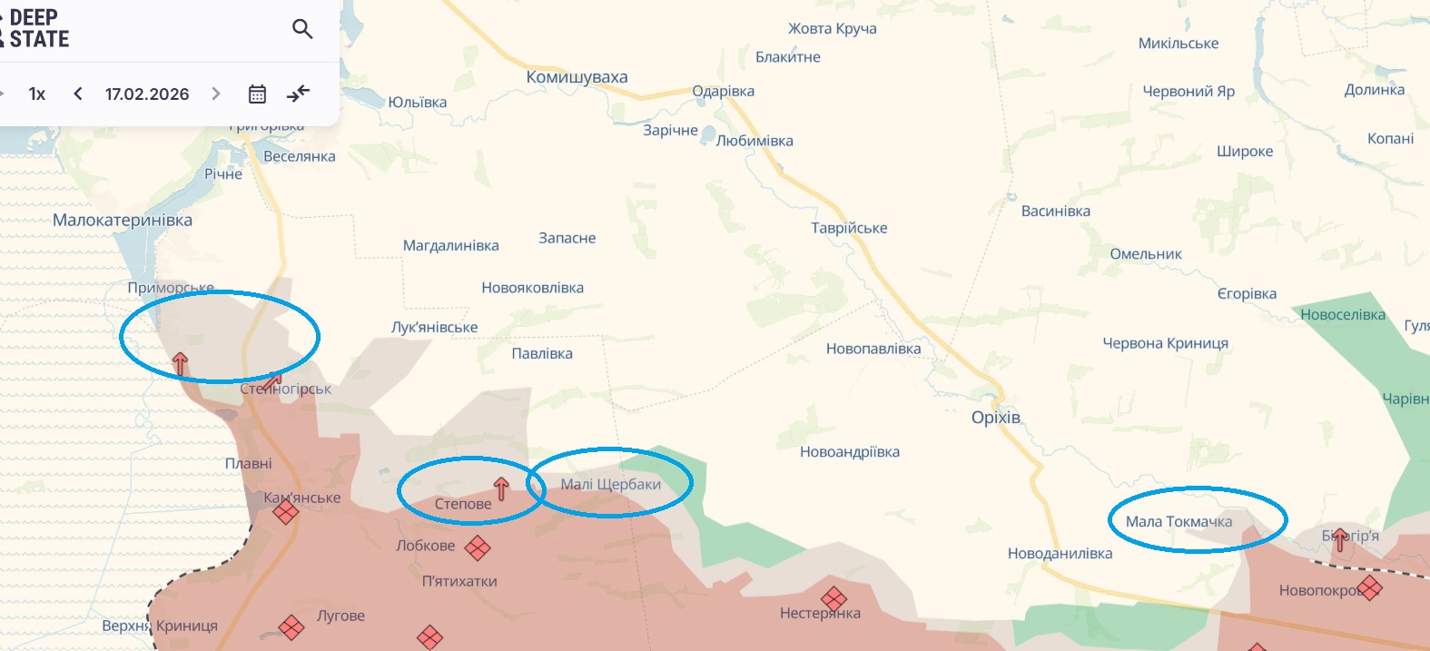 На Оріхівському напрямку агресор проводив чотири атаки у напрямках Малої Токмачки, Степового, Малих Щербаків та Приморського.