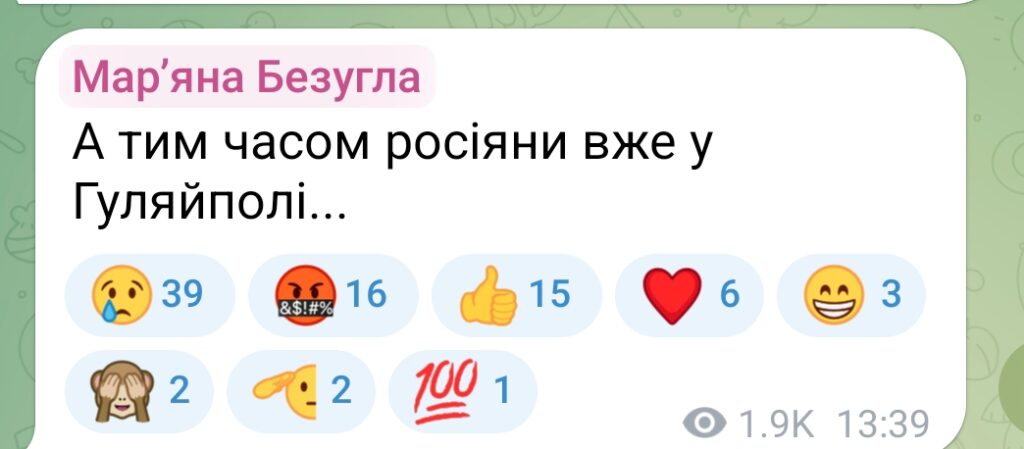 ОНОВЛЕНО. Нардепка Мар’яна Безугла повідомляє, що росіяни зайшли у Гуляйполе…