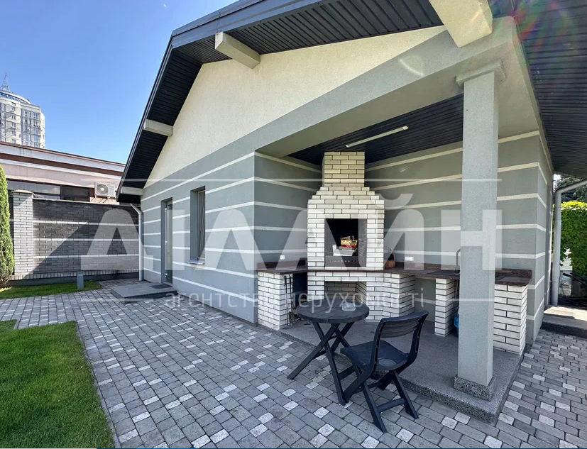 Будинок площею 350 м² побудований на ділянці 18 соток, має два поверхи, підвал, індивідуальне газове опалення та паркінг. На території облаштовано капітальну зону відпочинку з барбекю, спа-центром, сауною та кімнатою відпочинку.