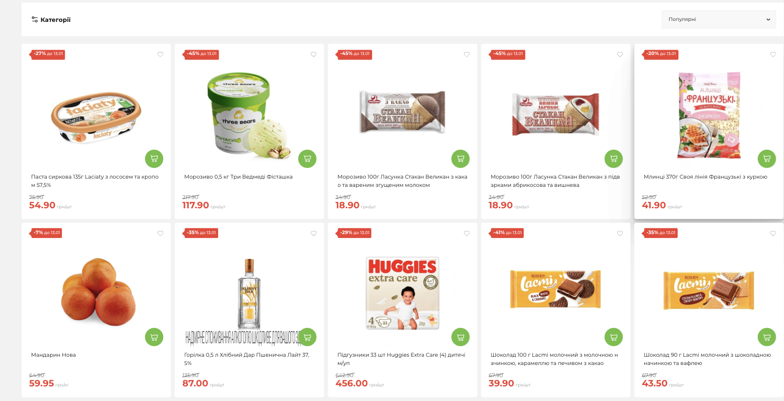 Найбільше подешевшали молочні продукти, сири, солодощі, сухі сніданки, дитячі товари та засоби гігієни. У багатьох позиціях економія сягає 30–45%, що робить поточні пропозиції одними з найвигідніших за останній час.