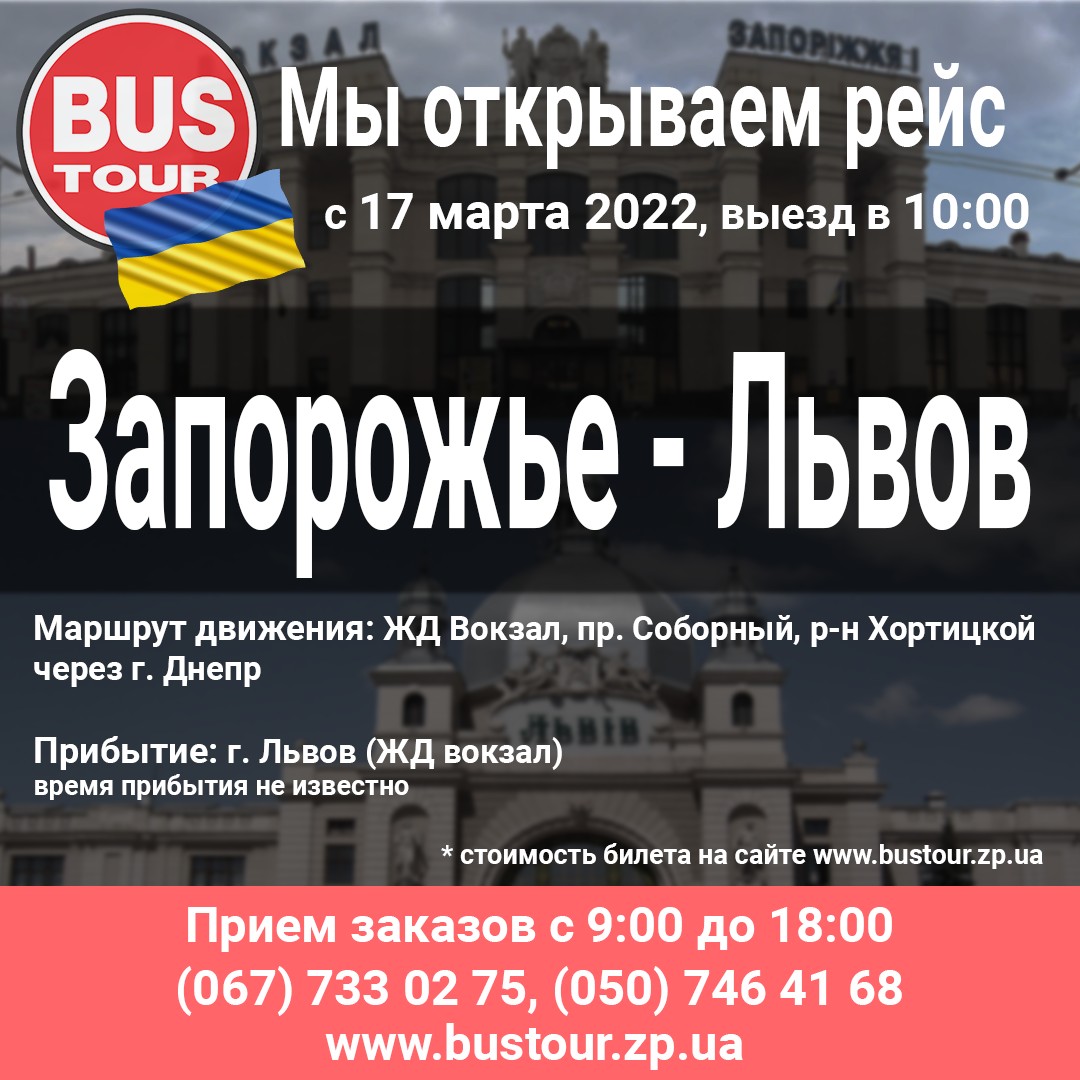 Транспортно-туристическая компания “БасТур” с 17 марта запускает автобусный рейс по маршруту “Запорожье-Львов”.
