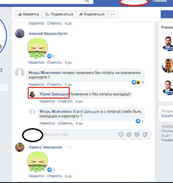 Здесь комментарии в пользу Чумаченко давали другие профили: Юрий Давыдов, Алексей Кононенко, Ирина Горенок, Алина Карпенко, Елена Масюк, Андрей Щербань.