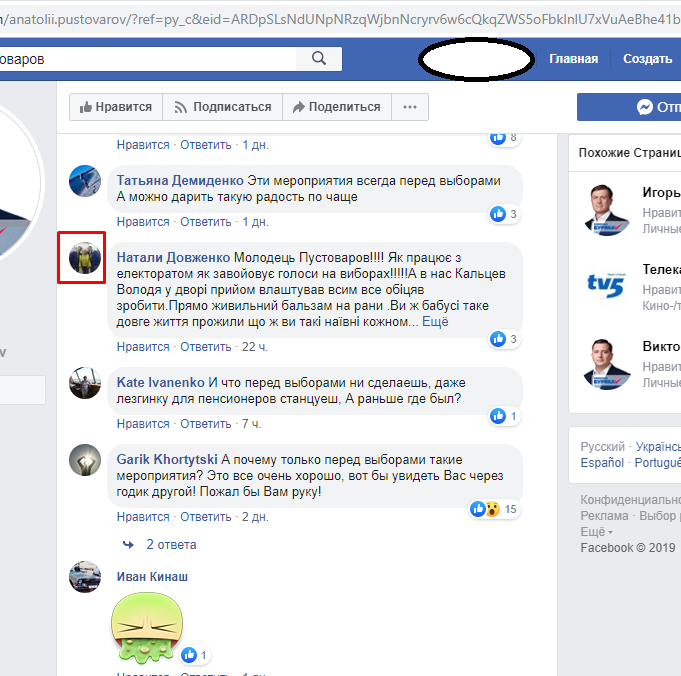 Так, мы взяли для анализа несколько постов кандидатов в нардепы Анатолия Пустоварова (баллотируется по 76-му округу) и Игоря Чумаченко (баллотируется по 74-му округу), которые входят в команду Владимира Буряка. Оказалось, что положительно их комментируют в первую очередь пользователи, профили которых имеют много общего между собой, и почти все они, с большой вероятностью, являются ботами.