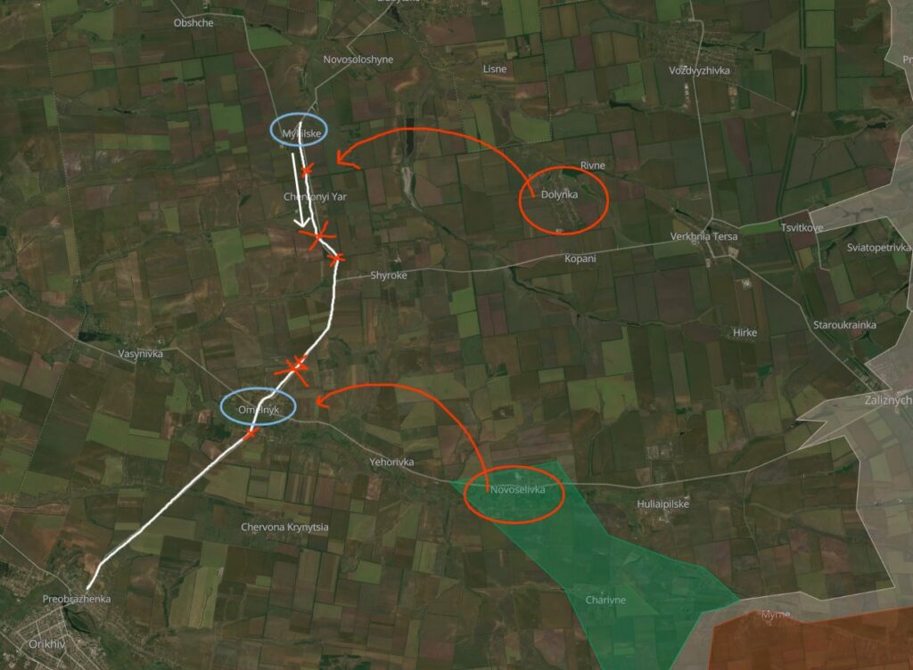 «Запорізький фронт спирається на два головні опорні пункти — Оріхів і Гуляйполе. Українці почали будувати оборону перед і за цими містами вже давно», — зазначає аналітик.