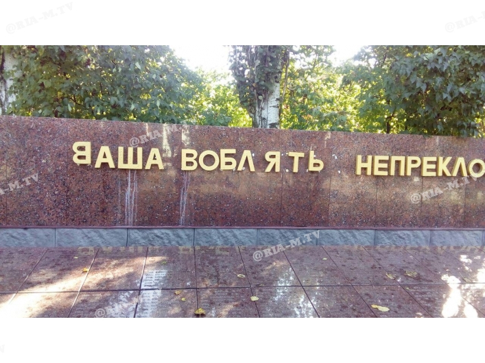 Как пишет РиаМелитополь, на мраморной стене были оторваны и переклеены буквы. Известно, что в этот день в городе была усиленная охрана улиц патрульными. Несмотря на ажиотаж людей и правоохранителей, это не помешало осквернить Братское кладбище.