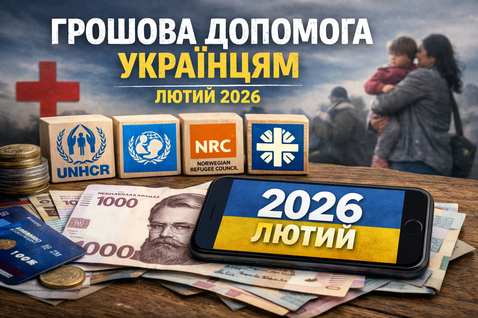 У лютому 2026 року одразу кілька міжнародних та українських гуманітарних організацій запускають або продовжують програми грошової допомоги для цивільного населення. Йдеться не про універсальні виплати, а про цільову підтримку для конкретних категорій вразливих людей — передусім ВПО, жителів прифронтових громад, родин з дітьми та тих, хто втратив житло або дохід через війну.