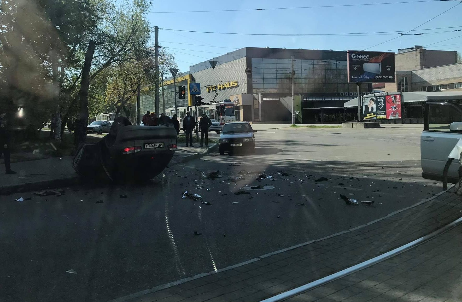 ДТП в центре Запорожья: автомобиль перевернулся, усыпав дорогу осколками (ФОТО)