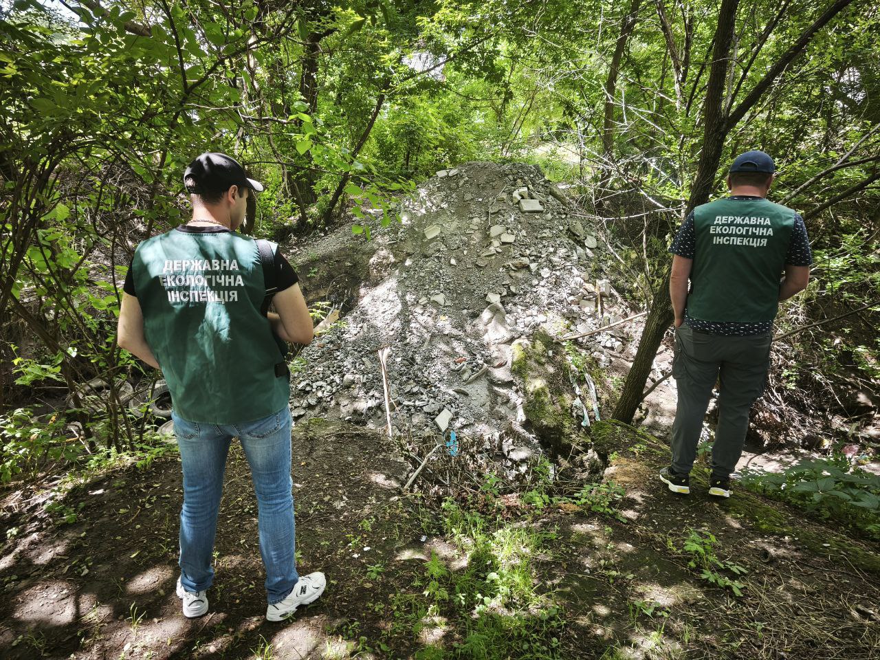 Фахівці Державної екологічної інспекції Південного округу зафіксували факт несанкціонованого розміщення будівельних відходів на площі близько 50 м² із висотою шару сміття до 1 метра.