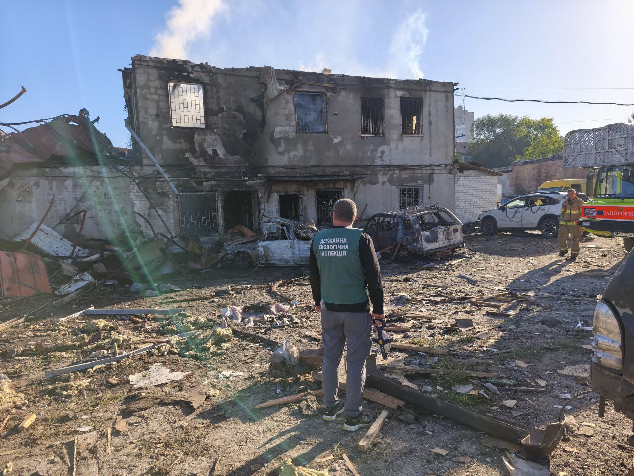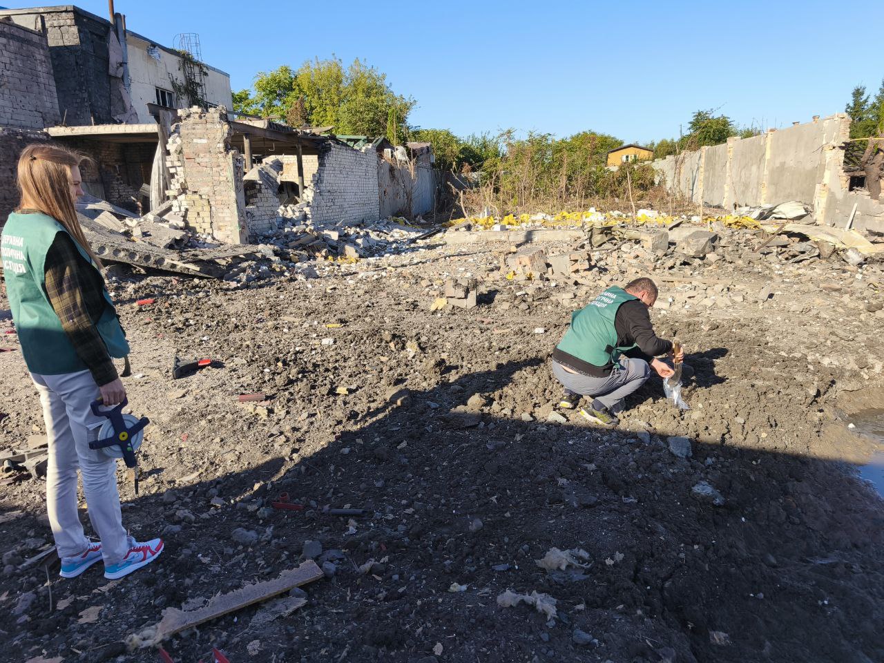 Екоінспектори провели обстеження низки територій міста Запоріжжя, що зазнали руйнувань унаслідок ворожих атак зранку 22 вересня.