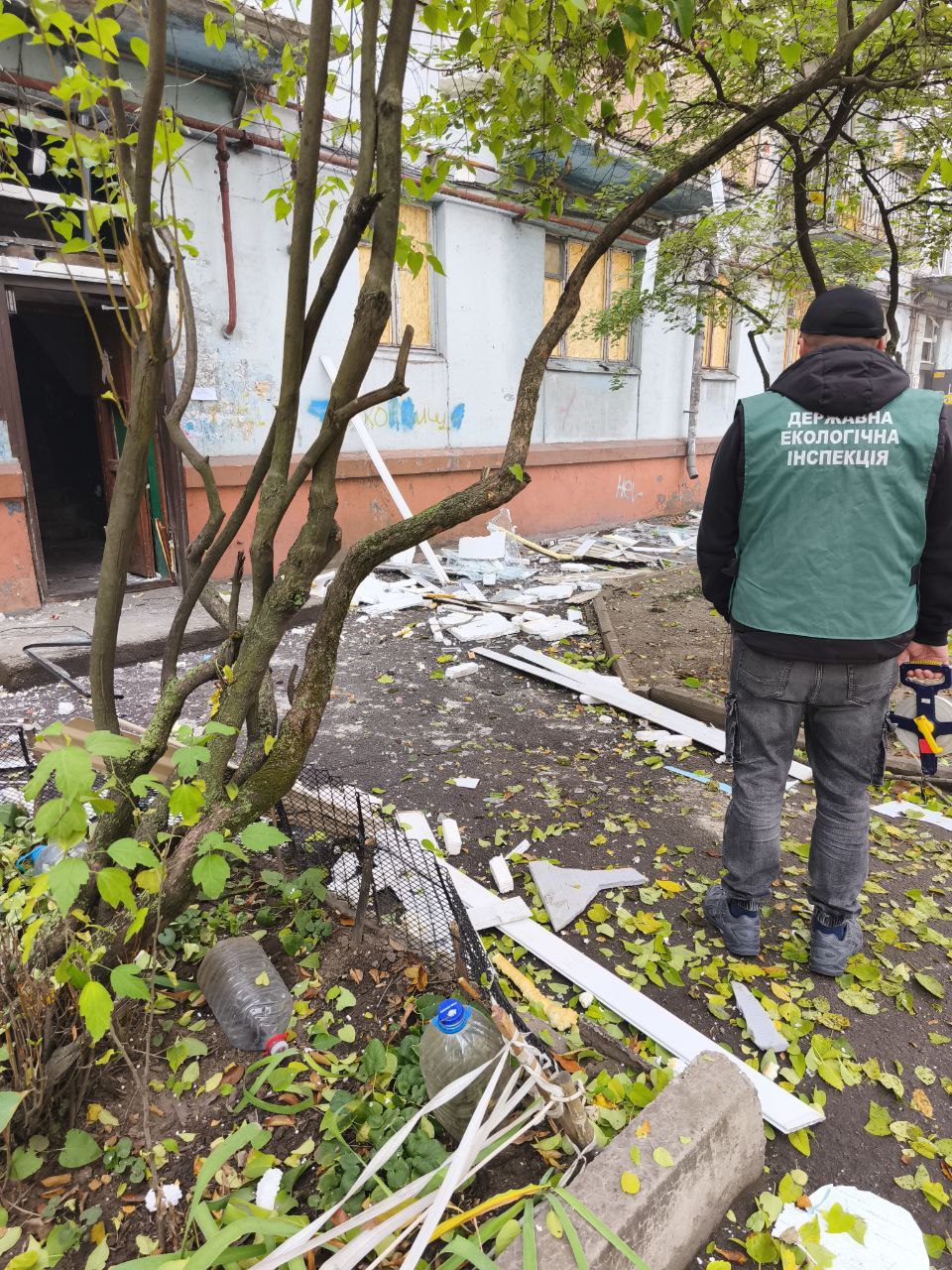 Державна екологічна інспекція Південного округу зафіксувала наслідки дронової атаки на Запоріжжя, яка торкнулася Вознесенського, Заводського та Дніпровського районів.