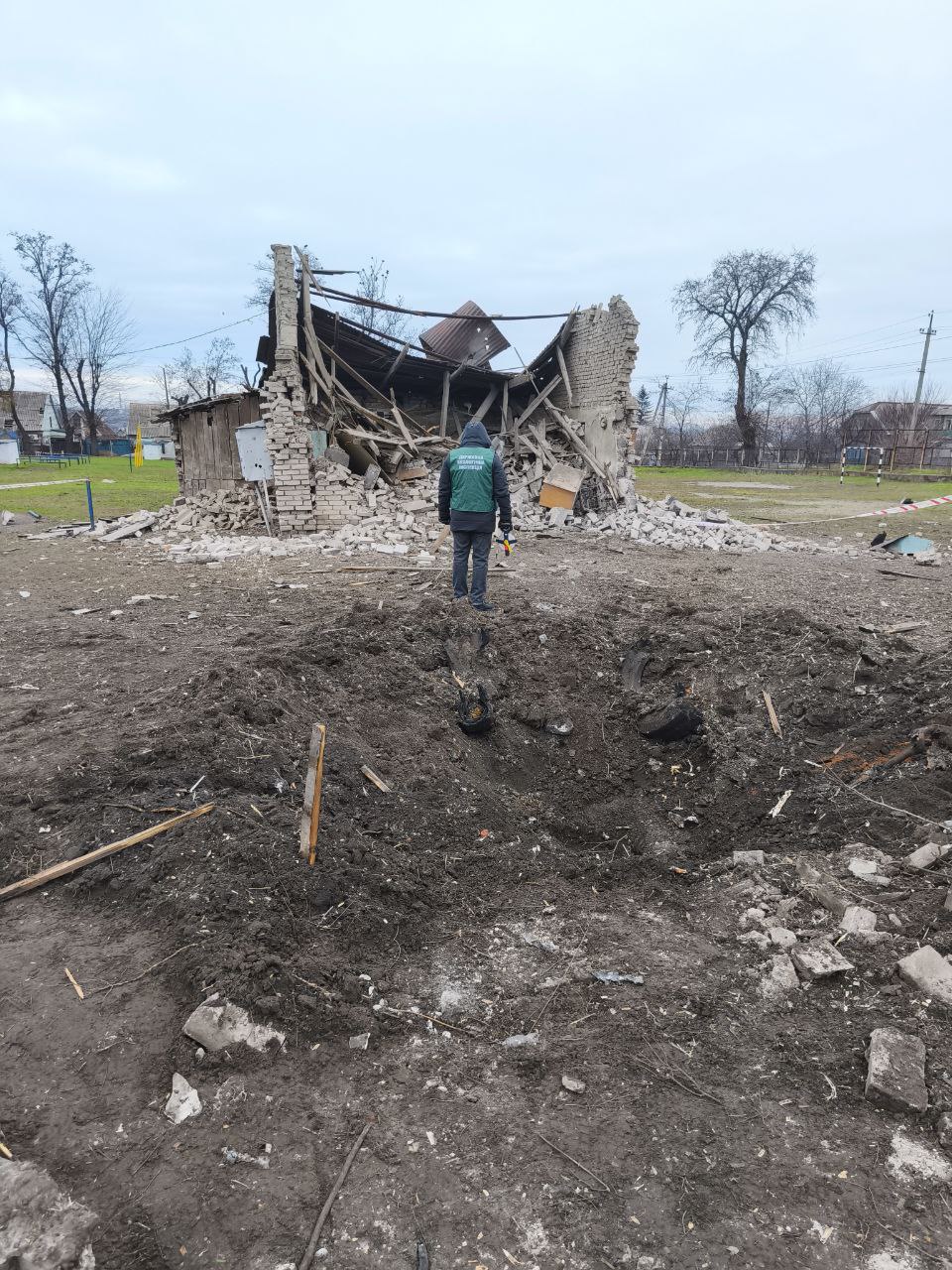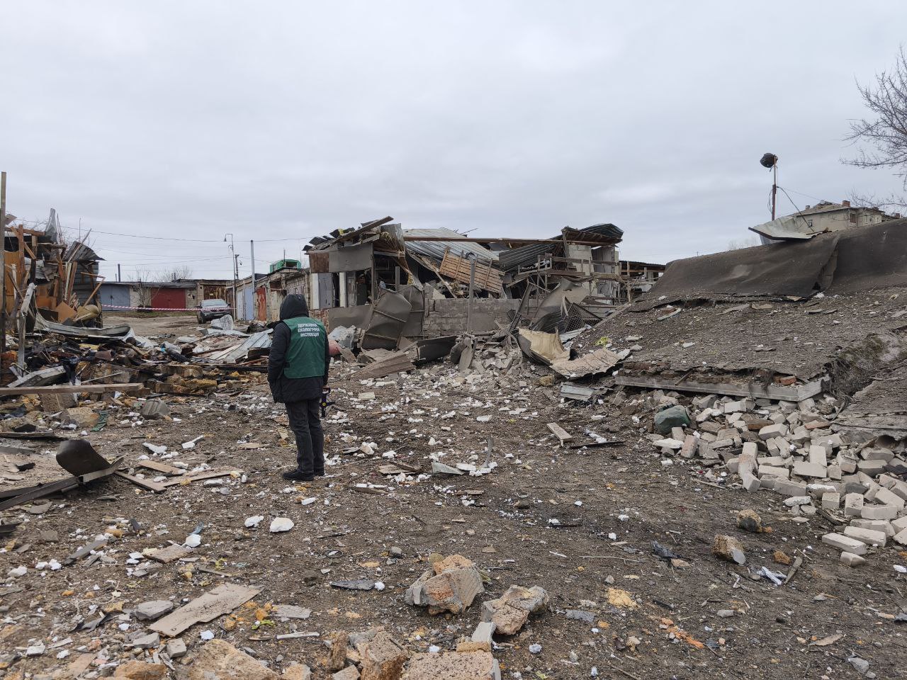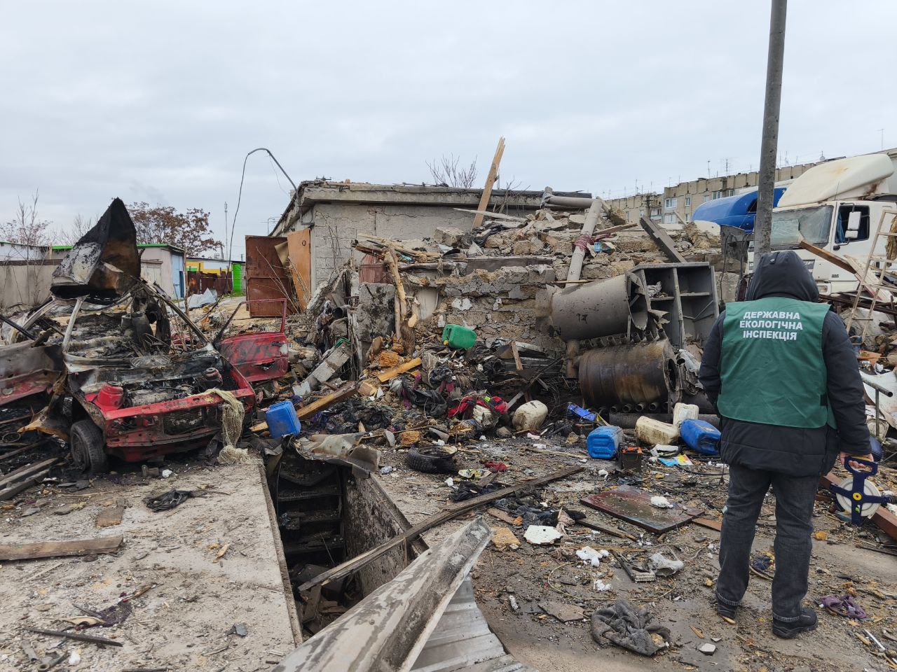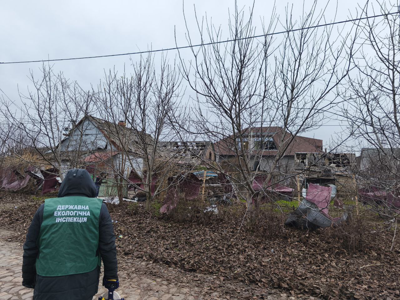 - Космічний район– засмічення території відходами руйнувань на площі понад 1000 м², зафіксовано воронку площею близько 36 м², відібрано проби ґрунту;