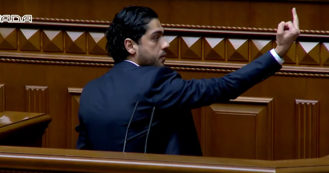 Сегодня, 4 ноября, в Верховной Раде Украины бывший член фракции “Слуга народа” Гео Лерос показал оскорительный жест президенту Владимиру Зеленскому.