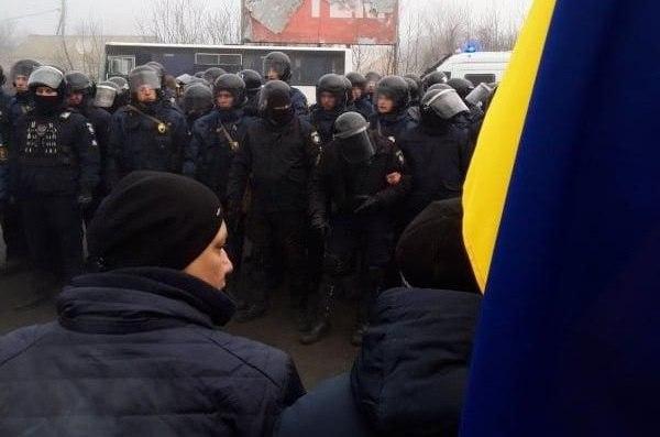 19:50. Украинцы прибыли в Новые Санжары. Перед этим полиция расчистила проезд от протестующих и горящих шин. Заезд сопровождали протесты и столкновения полиции с местными жителями.