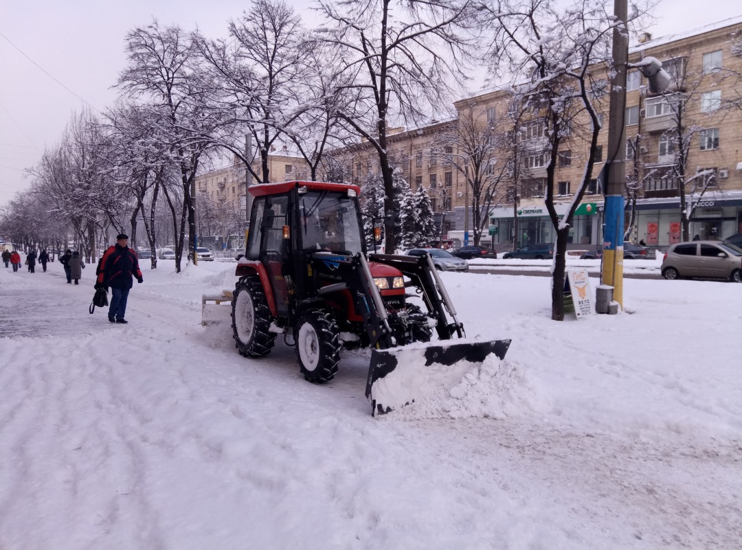 ФОТОФАКТ: в Запорожье на расчистку тротуаров от снега выехали трактора