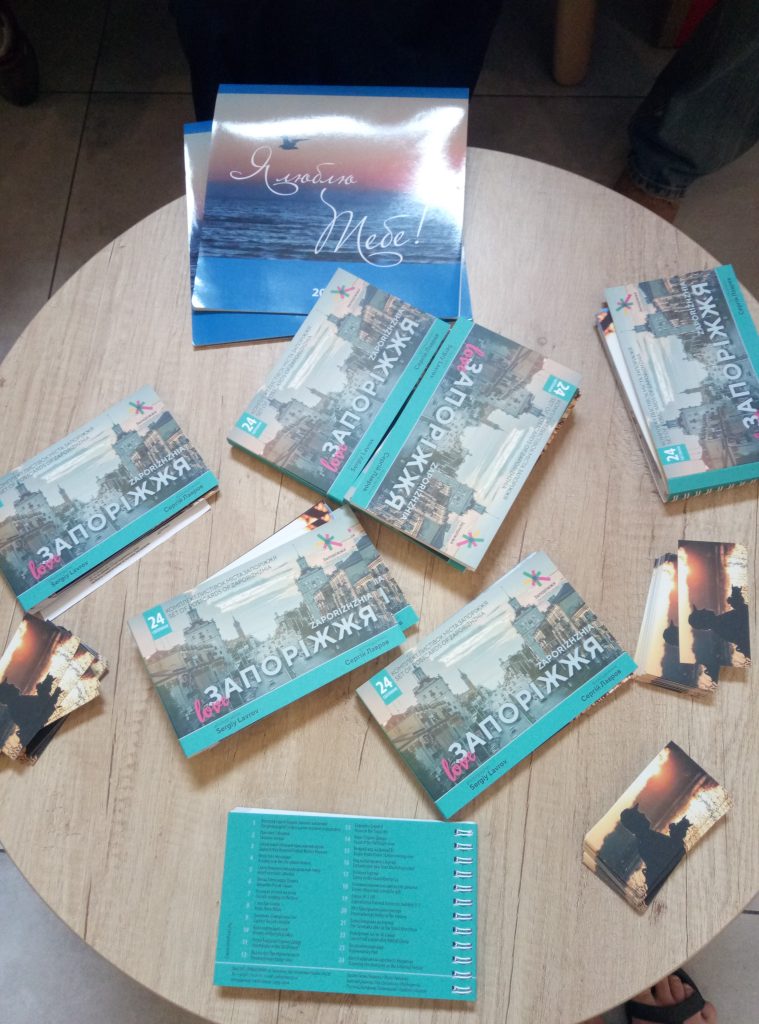 Работа уместилась в 24 открытки, фотографии были сделаны в разных местах города. Также каждая открытка имеет описание знаковых мест на украинском и английском языках, что поможет гостям города ориентироваться по Запорожью и иметь памятный сувенир.