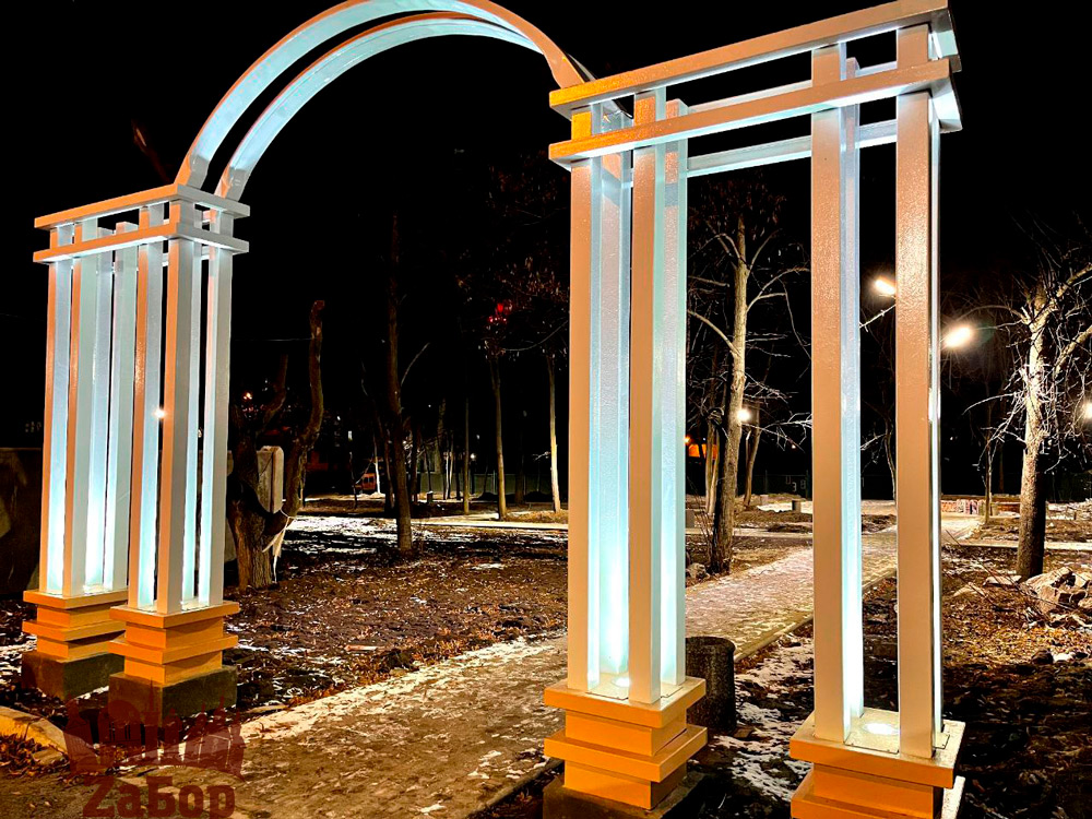 Как видно на фотографиях, единственное чего очевидно не хватает в сквере – это скамейки. При этом, основная часть работ уже выполнена: установлены освещенная арка и фонарные столбы, уложена плитка на множестве извилистых дорожек. Впрочем, на месте еще присутствуют некоторые строительные материалы.