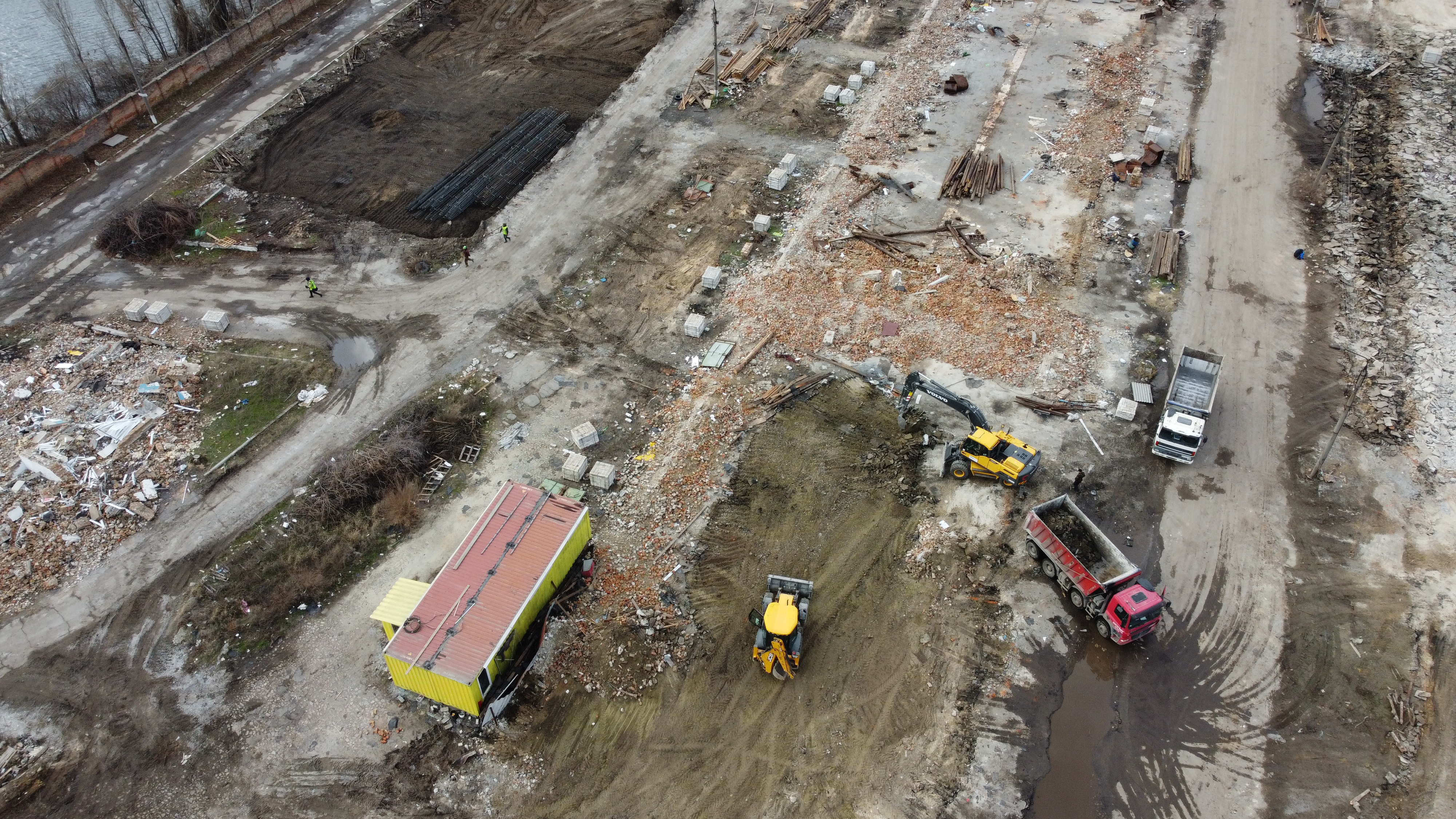 Сейчас на месте стройплощадки работает техника, которая убирает остатки старых ангаров и складов. Само строительство еще не начато. На видео ниже можно посмотреть, как выглядит место для будущего ТРЦ с высоты 50 метров.