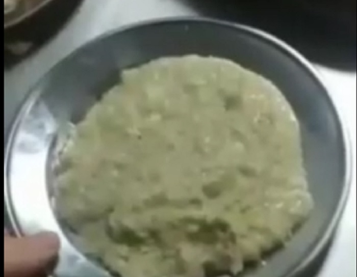 На нем запечатлена тарелка с кашей, которую невозможно вытряхнуть, даже подбросив в воздухе. Еда намертво прилипла к посуде. В приписке к видео говорилось, что речь о воинской части 3033 Нацгврадии.