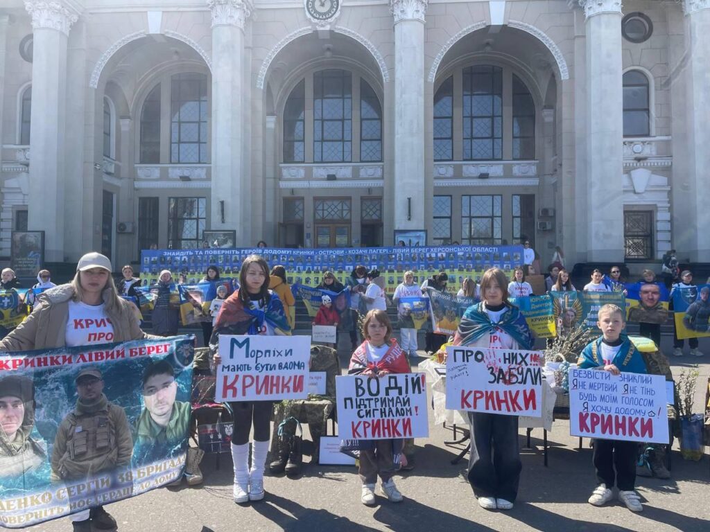 Ми, дівчата, почали шукати одна одну в соцмережах — через Facebook, оголошення, ключові слова: 38 бригада, 35,36, 37, Кринки, Херсон. Знайшовши перших, створили велику Viber-спільноту. Це були ТрО 122, 123, 124, 126. Ми об’єдналися одним великим напрямком і почали самостійно шукати: знайшли волонтера, бус, поїхали в Одесу, Миколаїв, Херсон, зібравши фото зниклих. Обходили морги, госпіталі, психіатричні лікарні. Шукали по всіх установах, медичних закладах. І коли ми не знайшли абсолютно ніякі відомості — зрозуміли: наскільки Кринки – це безповоротний та жорстокий напрямок.