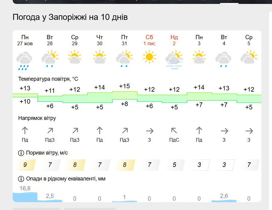 Висновок-орієнтир: цілком ймовірно, що середньодобова температура у Запоріжжі може опуститись до або нижче +8 °C в першій половині листопада, прогноз на кінець жовтня поки не дає істотного зниження температури. Але точну дату передбачити складно — залежить від атмосферних умов.