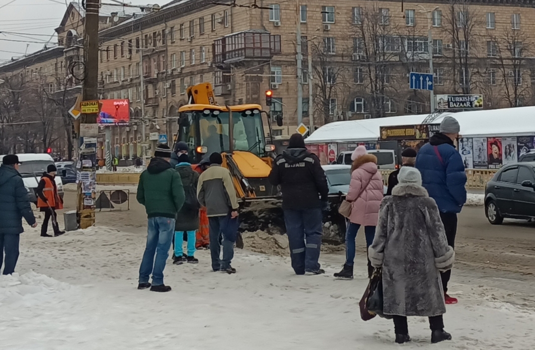 Коммунальщики вручную помогают технике расчищать от снега остановки в Запорожье (ВИДЕО)