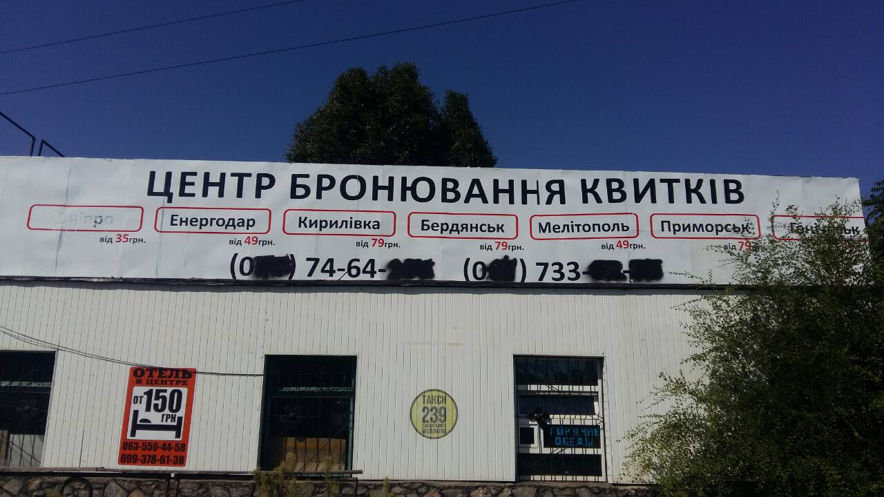 То, каким образом был испорчен баннер, может свидетельствовать о происках конкурентов. Ведь цены на проезд на популярные направления, которые были указаны на вывеске, значительно ниже тех, которые у главного автовокзала Запорожья. Так, проезд в Днепр стоит всего 35 грн, в то время как с АС-1 – 62 грн. Ниже у нового соседа главных автоворот города и цены на популярных направлениях Кирилловки, Бердянска, Мелитополя, Энергодара.