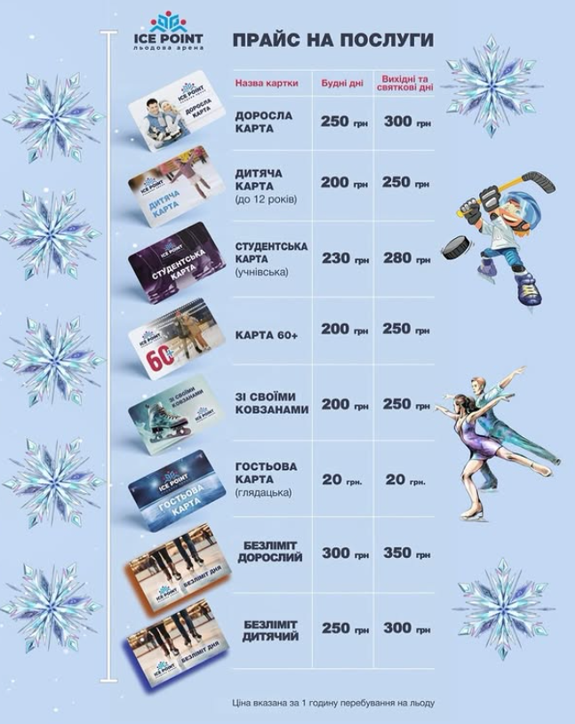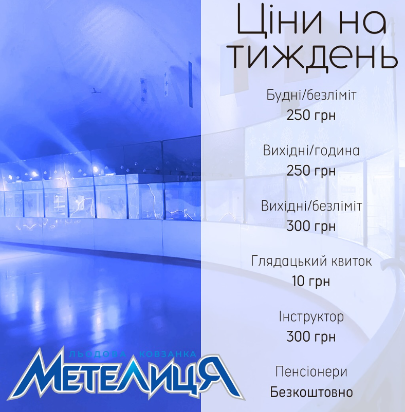 Акцент зробив огляд послуг і цін на різних ковзанках, а також додав розклад.