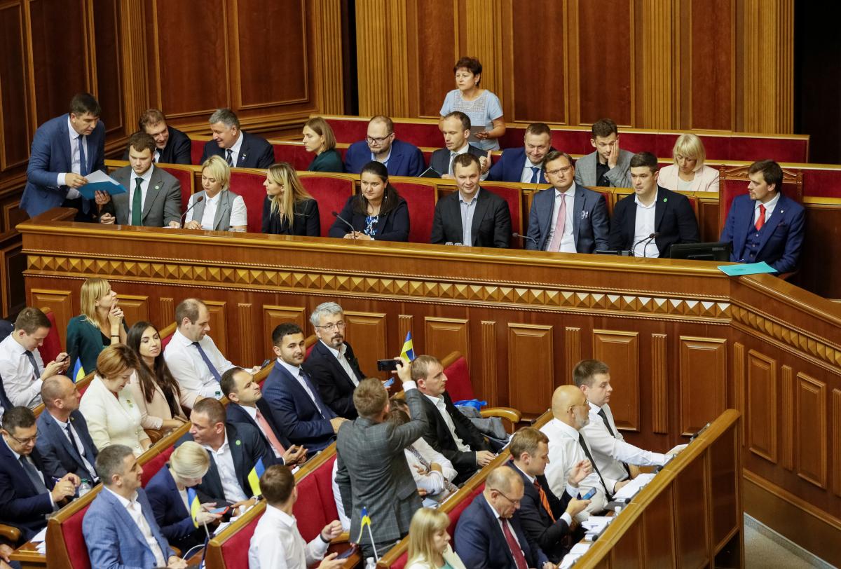 Фракция президентской партии «Слуга народа» распределила места для народных депутатов в сессионном зале. Согласно плану, депутаты от «Слуги народа» должны занять девять передних рядов, а также все места, прилегающие к ложе Кабмина.