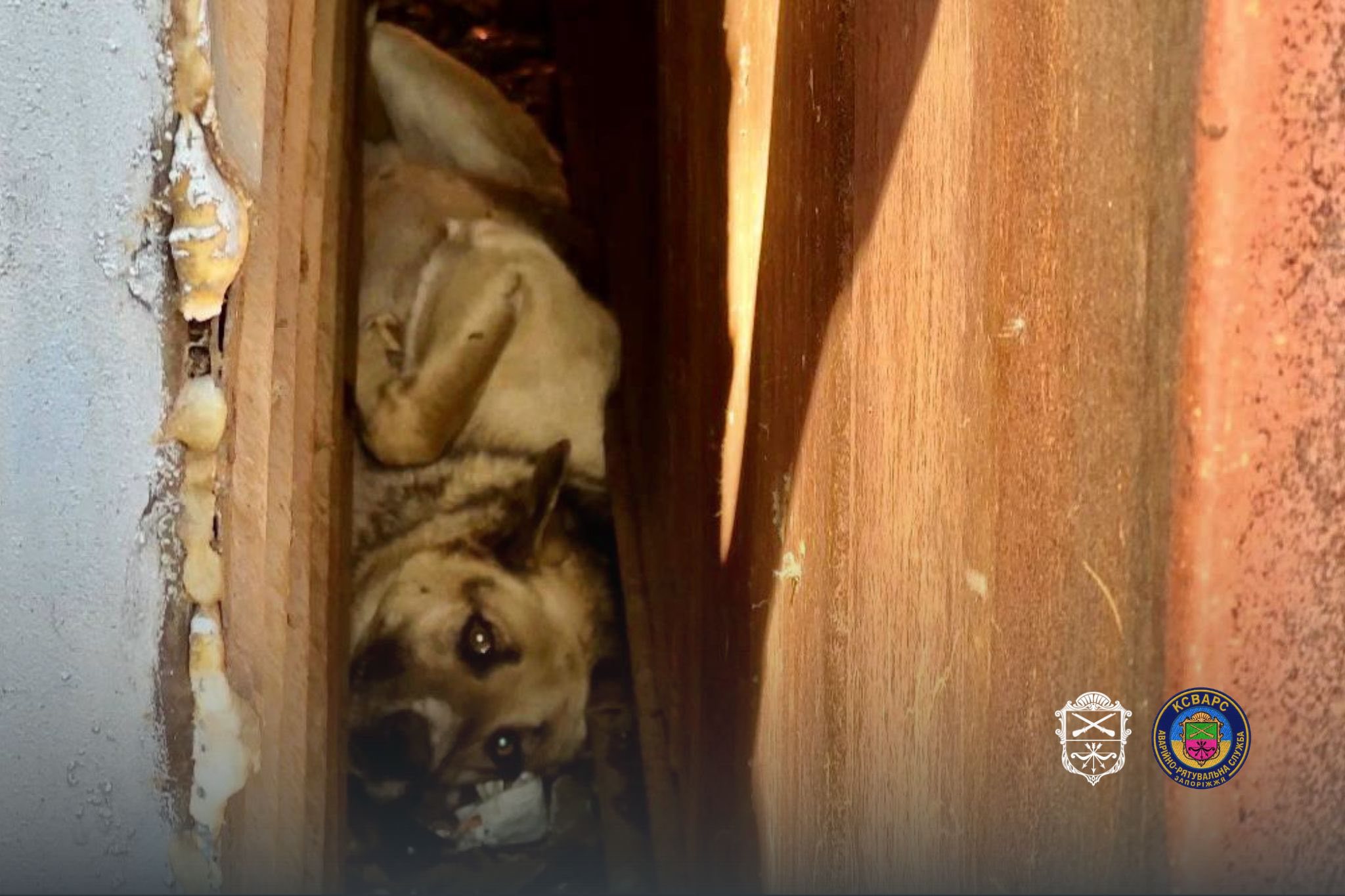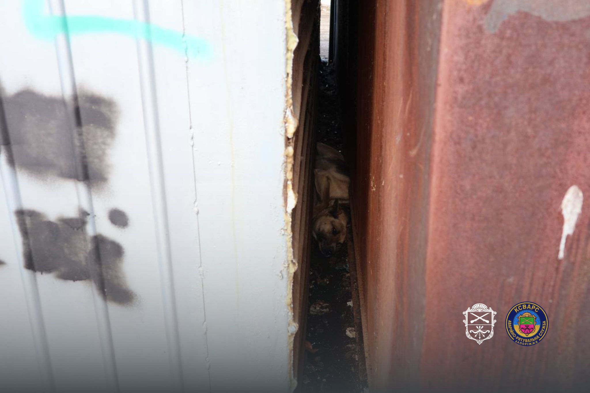 У Запоріжжі рятувальники КСВАРС врятували собаку, який потрапив у пастку між гаражами та не міг самостійно вибратися.