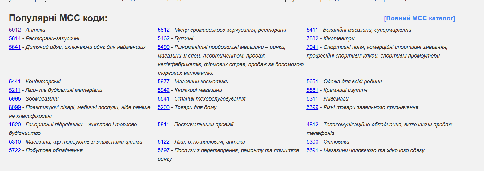 Є простий спосіб, як дізнатися МСС-код компанії. Це можна зробити на сайті довідника МСС кодів України.