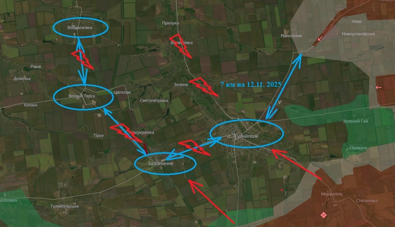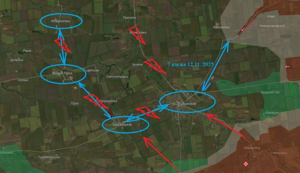 - Взяття під щільний вогневий контроль інших шляхів постачання (зараз ворог вже в 7 км від північно-східних околиць Гуляйполя – ред), зокрема через район Залізничне – Верхня Терса – Воздвижівка.