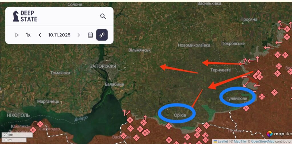 - Наступним кроком може бути вже вихід в тил Оріхівському угрупуванню ЗСУ. Це може стати можливим, якщо росіянам вдасться одночасно захопити Покровське Дніпропетровської області та досить велике селище Тернувате на кордоні з Дніпропетровщиною;