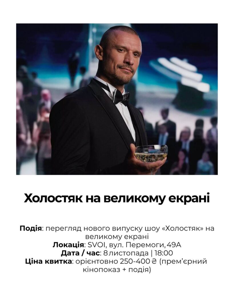 Для фанатів та фанаток телевізійного шоу Холостяк є чудова новина — шоу можна буде подивитися на великому екрані. Ціна квитка — від 250 гривень.