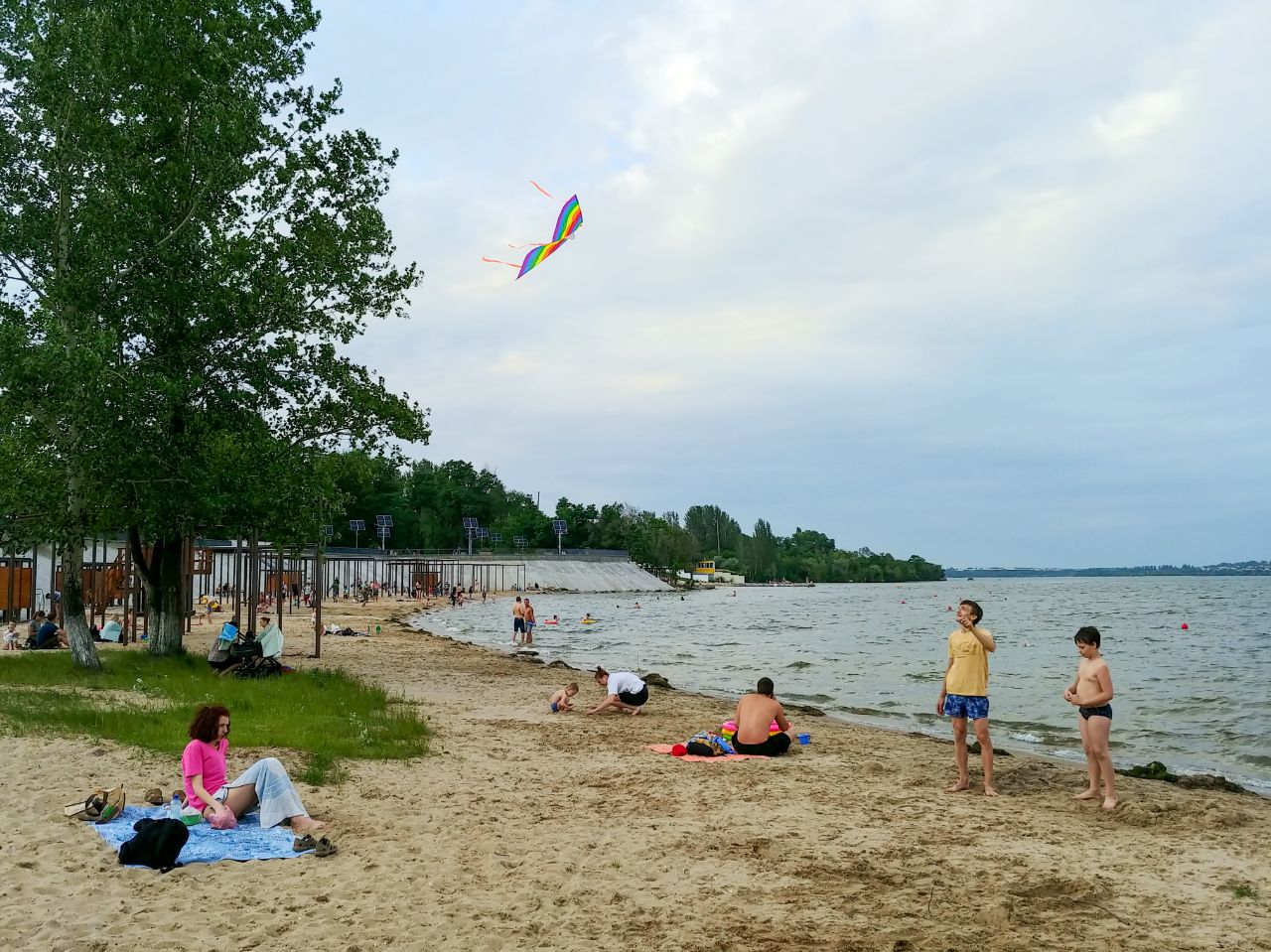 Центральный пляж Запорожья также называют Ждановским. Здесь расположено много заведений, где можно расслабиться и перекусить. Также есть волейбольная и футбольная площадки, раздевалки и биотуалеты.