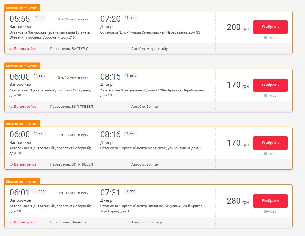 Маршрутка Запоріжжя Дніпро: розклад рейсів