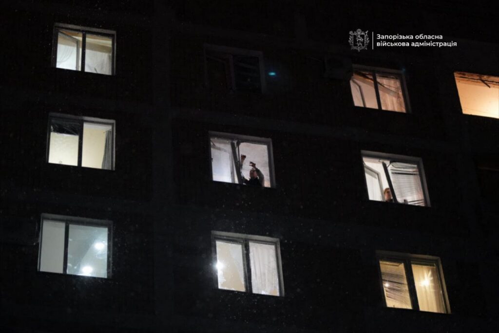 22:02 Вибиті вікна, пошкоджені балкони, є пошкодження дорожного полотна та нежитлового приміщення – такі наслідки ворожої атаки на Запоріжжя.