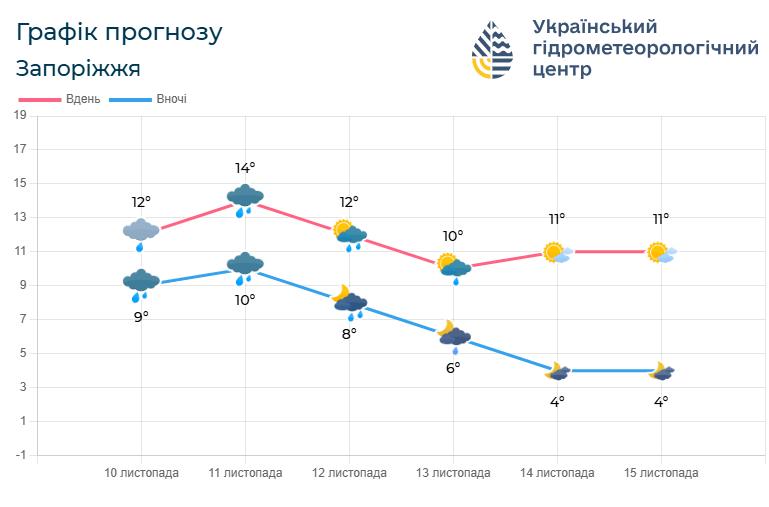 Отже, протягом 10-12 листопада в Запоріжжі буде хмарно, а також дощитиме. Сподіваємося, всі запоріжці до цього часу матимуть тепло в квартирах, адже поки що підключення опалення ще триває.