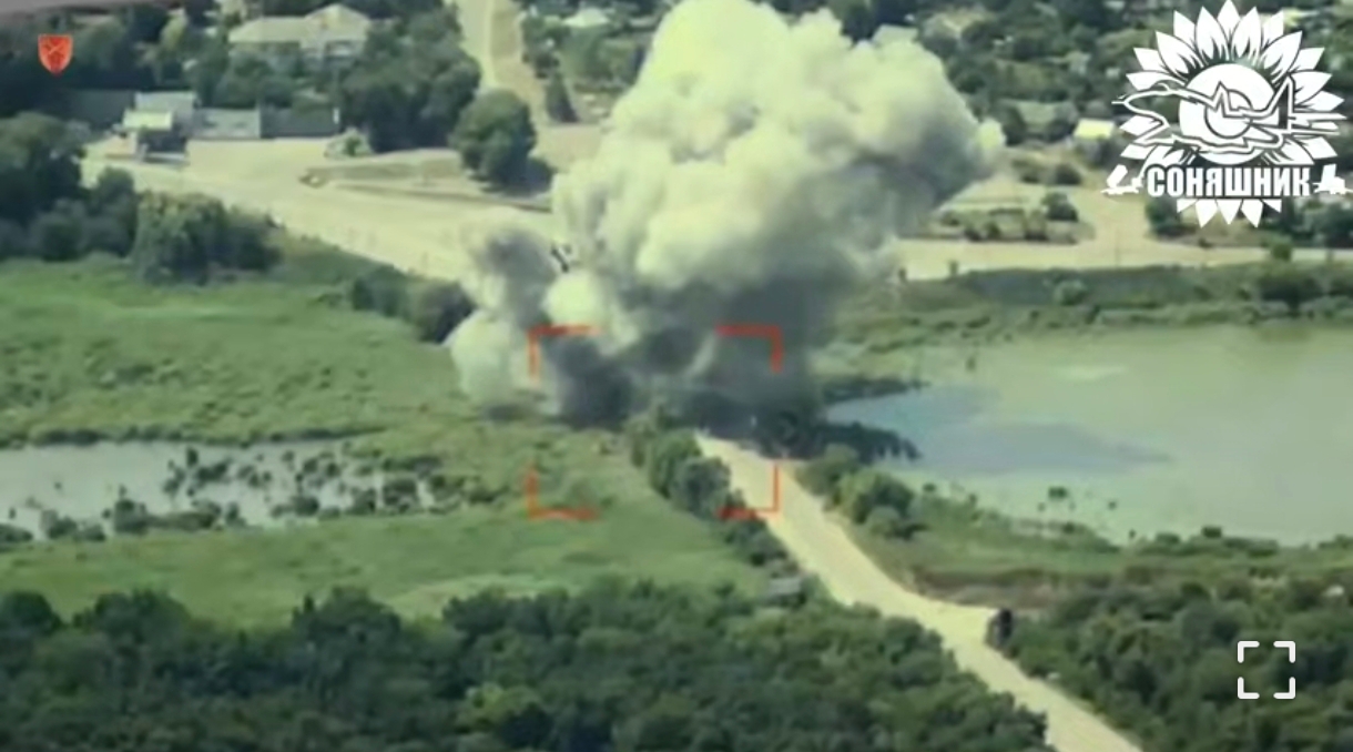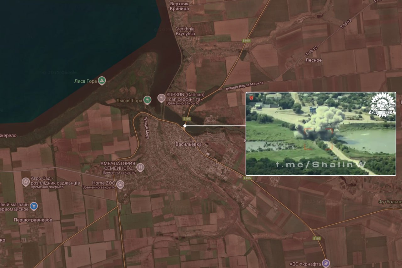 Ну ось це і сталось, екіпаж МіГ-29 влучним скидом авібомби GBU62 руйнує переправу у Василівці на Запоріжжі. Як можна побачити на відео, спроби ворога перетнути даний участок уже були, проте наші козаки є**ть цю нечисть всіма силами. Прорідили трішки тут Бук-и тож ударів стане більше, а уже є дуже і дуже смачні удари по КП, ПУ, БпЛА і бк, підтверджені знищені офіцери і сотні жмурів болотяних, – повідомляє Соняшник