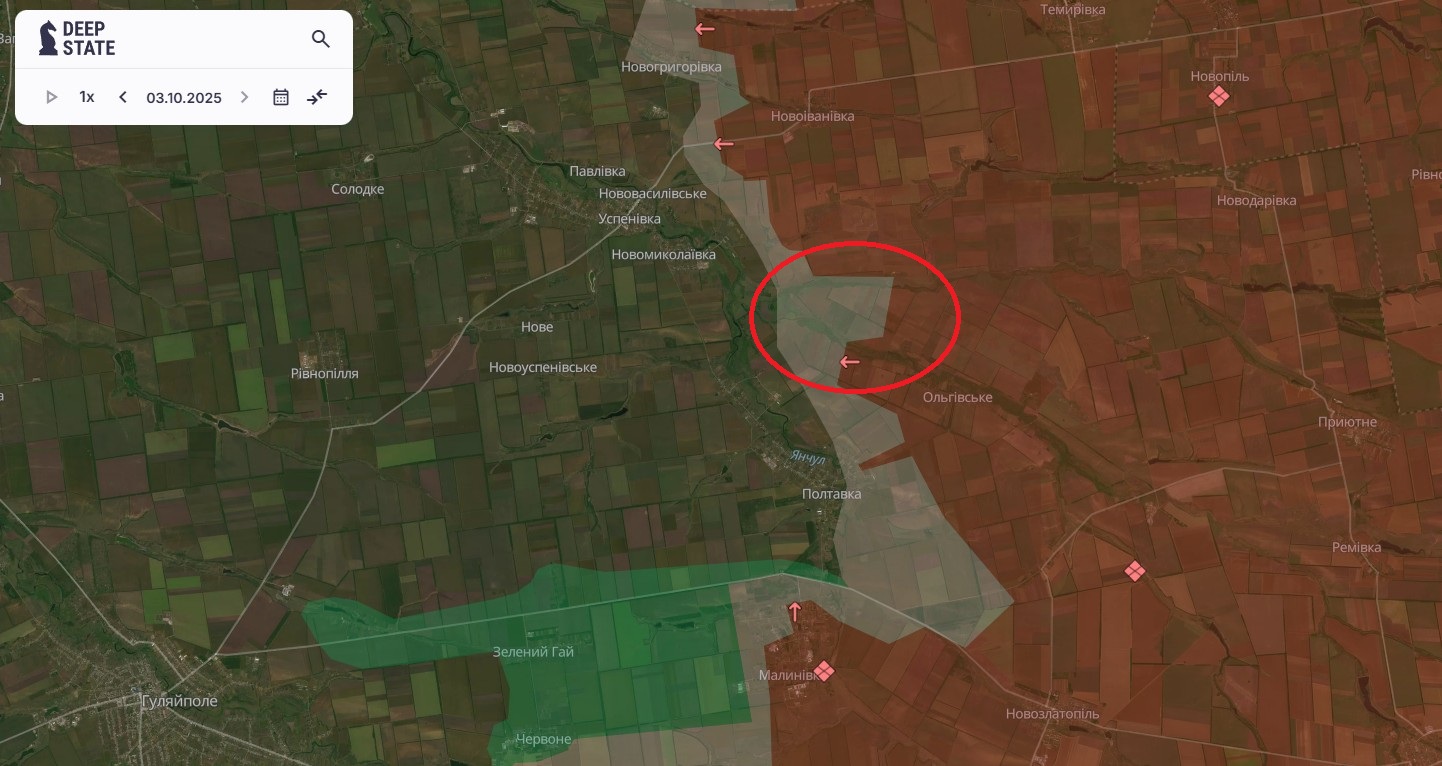 Ситуація на лінії фронту в Запорізькій області залишається складною. Росіяни продовжують тиск на кількох напрямках та мають нові просування. За даними DeepState ворогу вдалося просунутися в районі Новоіванівки, закривши невелику “кишеню” в районі Новоіванівки. Також віднедавно окупованою є с. Ольгівське. Про небезпеку для Гуляйполя, яку несуть ці просування, ми писали раніше.