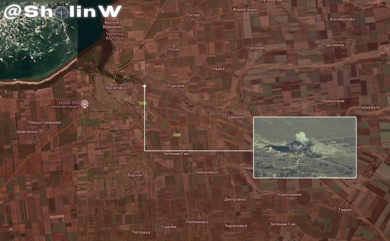 Осінтерами встановлено, що удар було нанесено по позиціях росіян в північно-східній частині Васиілвки, приблизно в 15 км від лінії фронту.