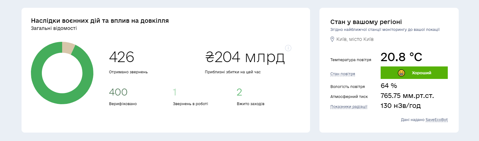 Українці також можуть повідомляти про всі факти екологічних злочинів проти довкілля, свідками яких вони стали. Наприклад, про горіння військової техніки; пожежі в лісі; розлив нафтопродуктів чи отруйних речовин у ґрунт або водойму; викид отруйних речовин (хлор, аміак, сірководень, синильна кислота, азотна кислота) у повітря тощо.
