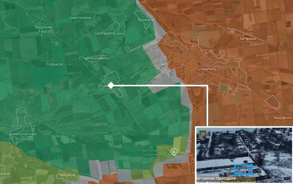 За останніми оновленнями DeepState більша частина Гуляйполя перебуває у сірій зоні – в місті присутні як українські бійці, так і ворог. Ситуація залишається складною.