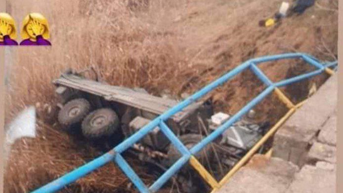 Судя по фото, видео и комментариям, которые были опубликованы Facebook, военный автомобиль РФ свалился с моста, будучи “нашпигованным” боеприпасами. Виною этому – банальное неумение управлять своей же техникой.