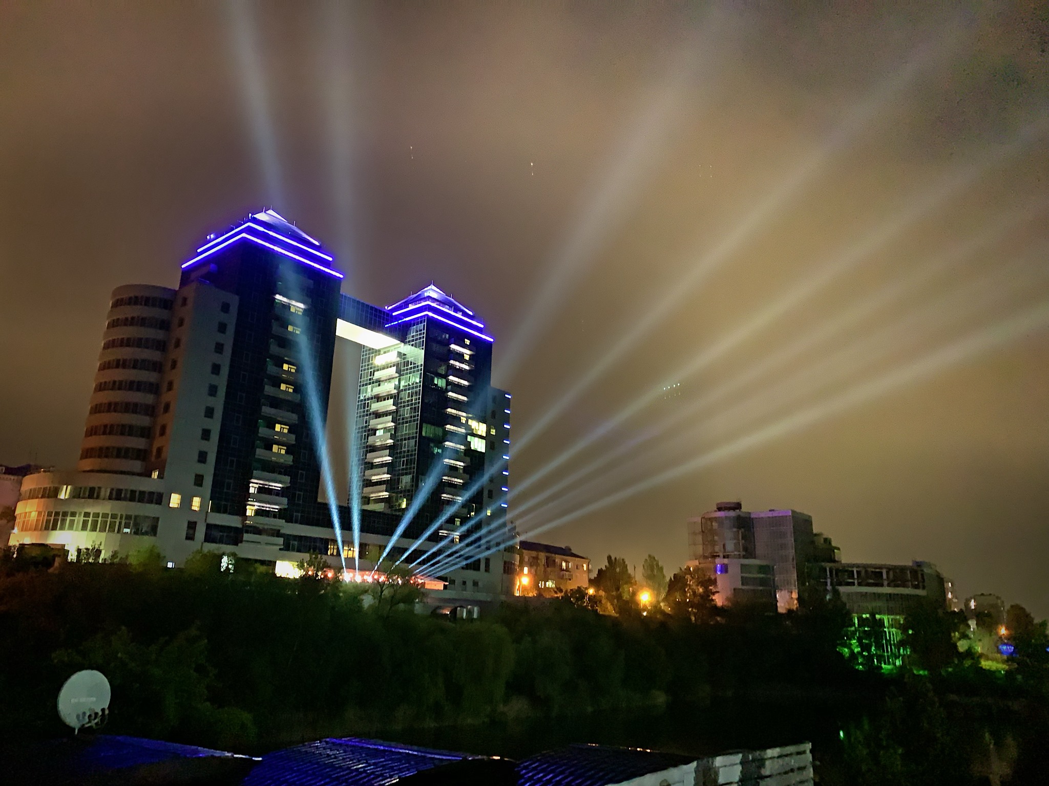 В Запорожье луч света запустили из “Khortitsa Palace Hotel”.