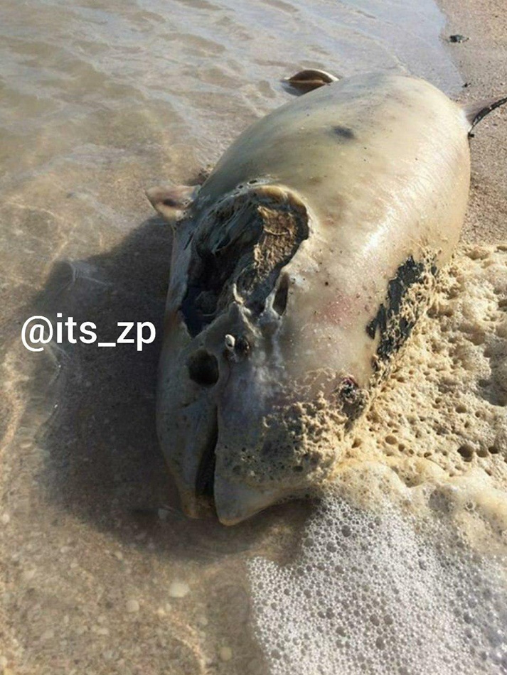 Чудище приобрело действительно жуткий вид. Вероятнее всего, животное погибло еще в Азовском море, а на берегу пролежало длительное время. К сожалению, гибель дельфинов в Азовском море – явление нередкое.