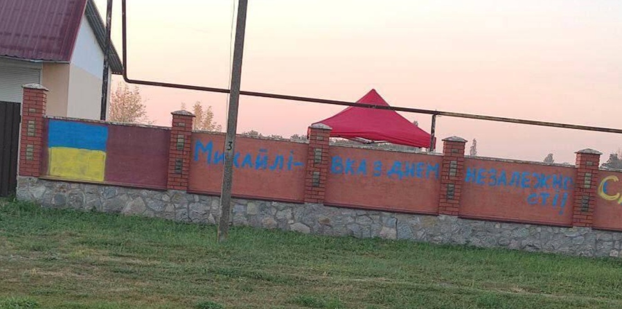 Так, у Михайлівці Василівського району місцеві мешканці привітали один одного, розфарбувавши паркан у кольори національного прапору і написавши “З Днем Незалежності, Михайлівка. Слава Україні”.