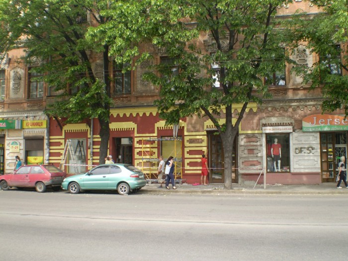Владелец одного из запорожских магазинов, расположенных в доме по адресу проспект Соборный, 52, решил привести в порядок часть фасада по принципу “Я художник, я так вижу”